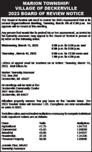 The Board of Review will meet to review the 2023 Assessment Roll at its annual Organizational Meeting, Tuesday, March 7th...