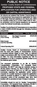 All citizens are advised that Sanilac County Board of Commissioners has prepared an application for State of Michigan financial assistance...