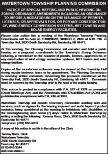 Please take notice that a meeting of the Watertown Township Planning Commission will be held on THURSDAY, MARCH 2, 2023...