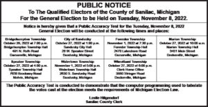 PUBLIC NOTICETo The Qualified Electors of the County of Sanilac, MichiganFor the General Election to be Held on Tuesday, November...