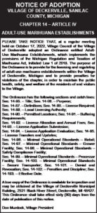 CHAPTER 14 – ARTICLE IV ADULT-USE MARIHUANA ESTABLISHMENTS PLEASE TAKE NOTICE THAT, at a regular meeting held on October 17,...