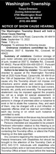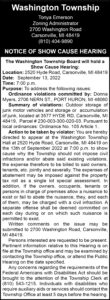 The Washington Township Board will hold a Show Cause Hearing:Location: 2520 Hyde Road, Carsonville, MI 48419Date: September 13, 2022Time: 7:00...