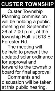 Custer Township Planning commission will be holding a public meeting on September 26 at 7:00 p.m., at the township Hall,...