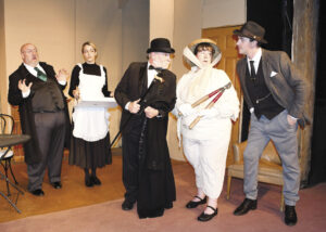 Sean Michaels, Leah Gray, Jeff Pedue, Jeanine McCanham and BrianWyzgowski rehearse a scene from The Barn Theatre’s new play, “TheMysterious...