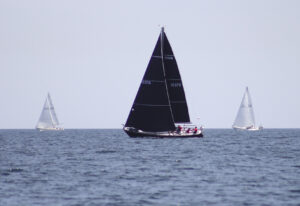 OFF TO THE RACES: Racing sailboats sometimes use a special type of foresail that starts at the bow and extends...