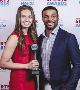 (L-R): Sandusky’s Haley Nelson and Detroit Lions receiver, Golden Tate. Haley was the winner of the Detroit Free Press Sports...
