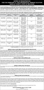 NOTICE OF REGISTRATION FOR THE FEBRUARY 27, 2024 PRESIDENTIAL PRIMARY ELECTION SANILAC COUNTY, STATE OF MICHIGAN TO THE QUALIFIED ELECTORS...