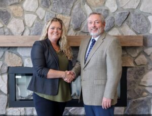 Angie McConnachie, UHP CEO shaking hands with Dan Babcock, former UHP CEO. The leaders and respective boards of Hills &...